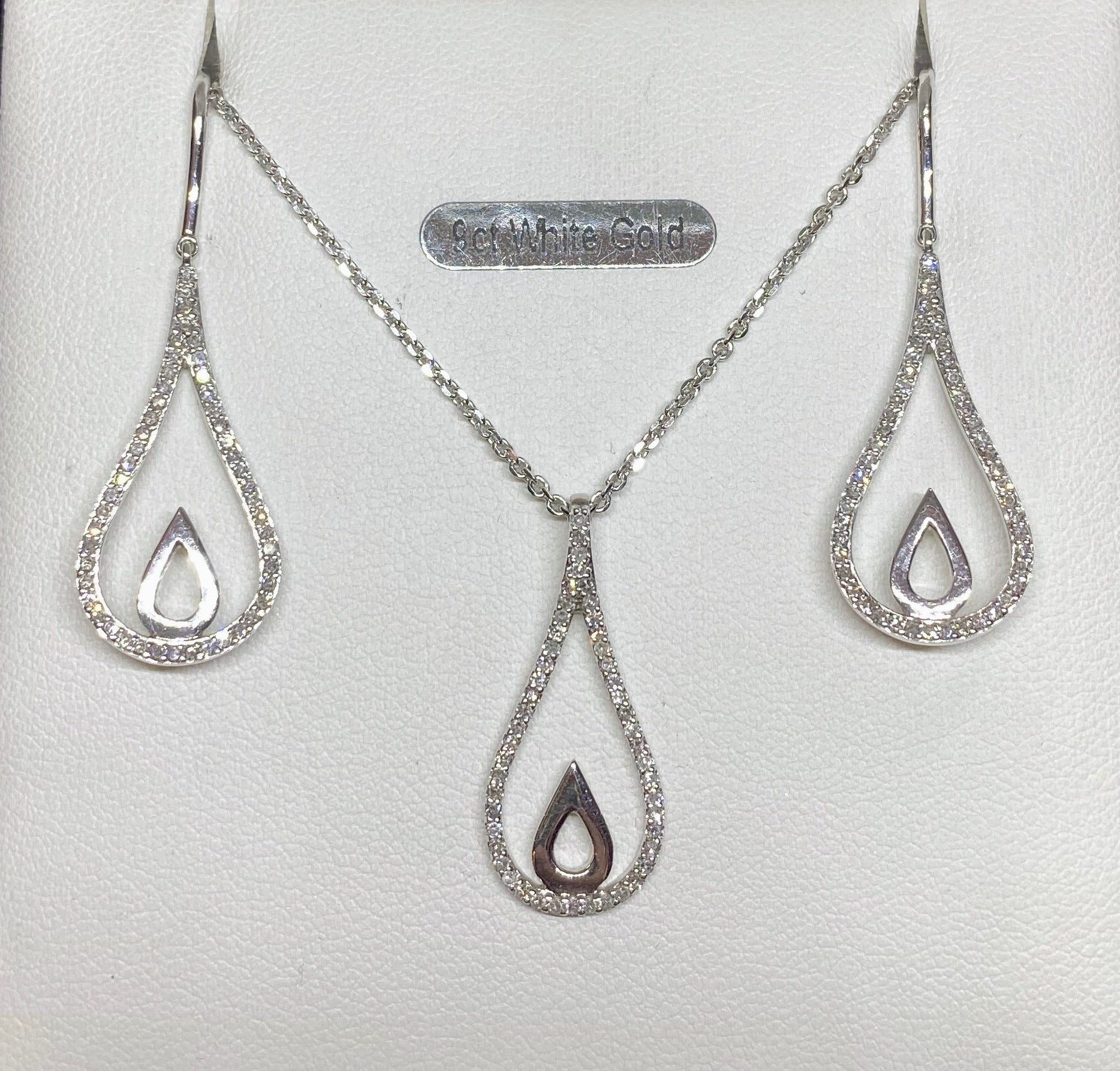 Simple & stunning, these Tear Drop Earrings feature 98 Brilliant Cut Diamonds & are set in 9ct White Gold with Hooks. Complete the set by adding the matching necklace via the link below.